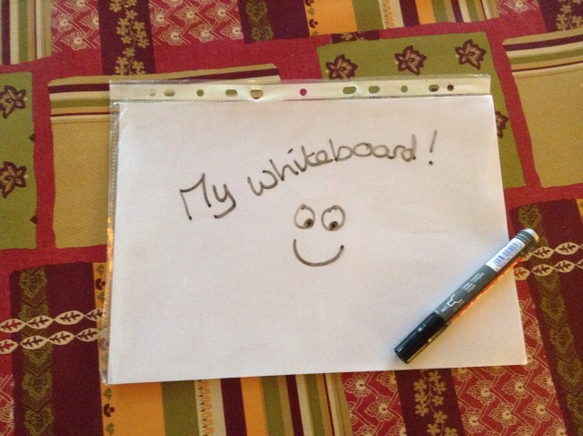 I’m actually lucky enough to have a set of mini-boards, a bit smaller than A4. Here in France kids need them for primary school and so I’ve a collection of various handmedowns from my children and their friends.